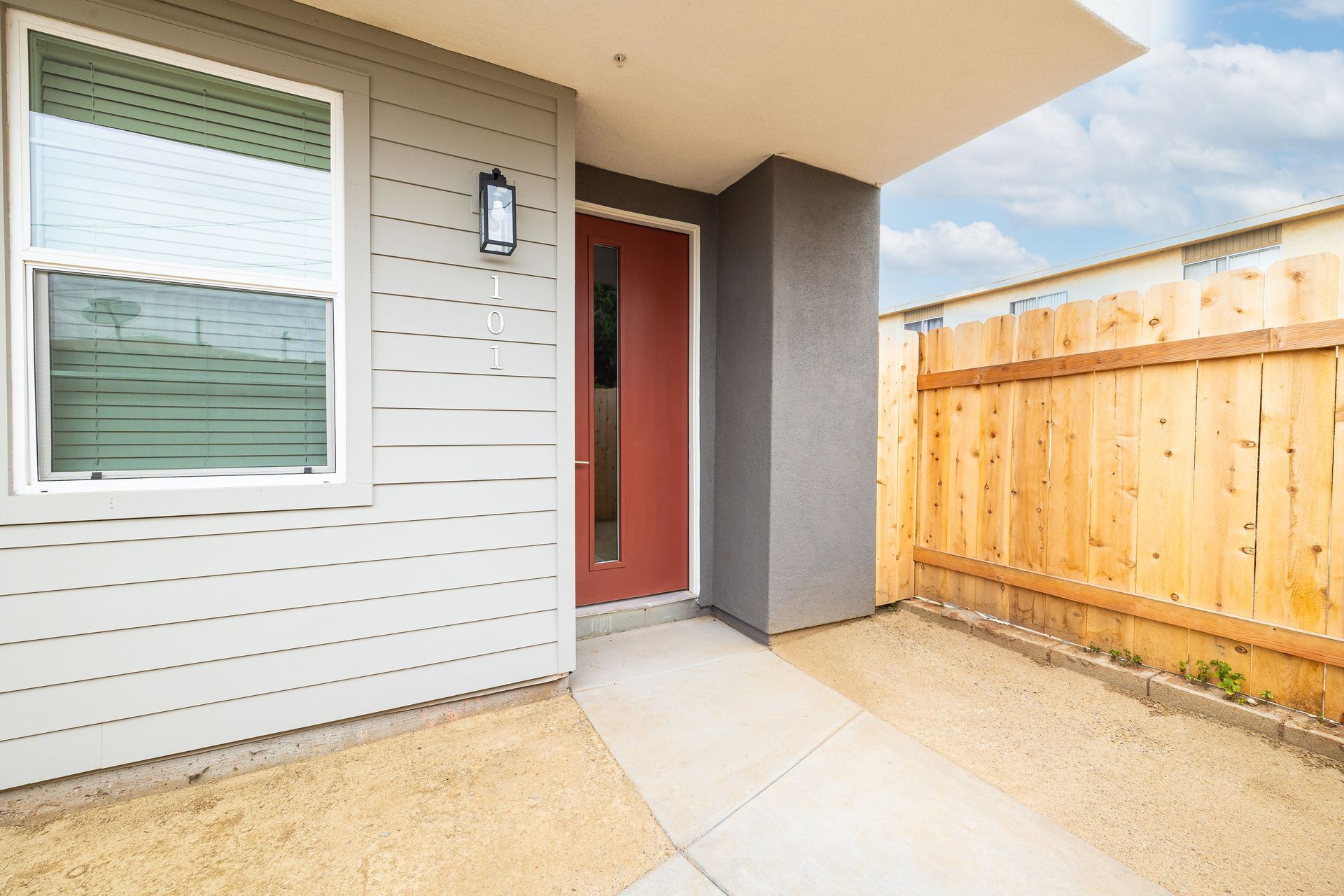 This spacious corner unit at Raintree Court is 1217 Square Feet. Unit 101 is a 2-bedroom, 2 1/2 bathroom floor plan. This townhome has a private 1-car garage with direct entry into the unit. This home has a sizable balcony with views from the kitchen/living/dining area. Other amenities include luxury vinyl plank flooring, plush carpeting in bedrooms and on stairs, central air-conditioning, full-size stackable washer dryers, large gourmet kitchen with quartz countertops, peninsula and stainless steel appliances. The spacious master bedroom features an en-suite bathroom with double sinks and separate water closet. The second bedroom is also en-suite.