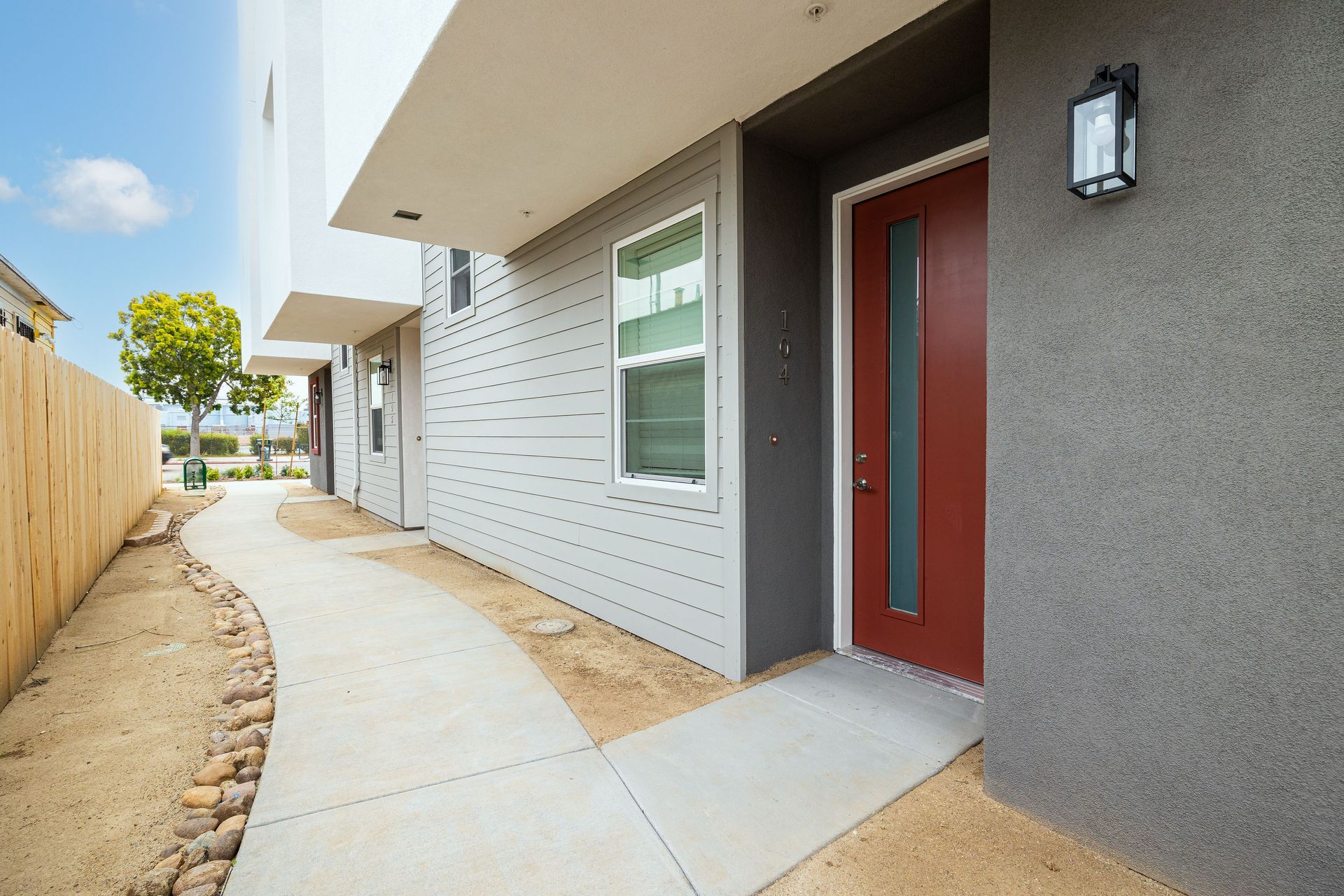 This spacious unit at Raintree Court is 1217 Square Feet. Unit 104 boasts 2-bedrooms, 2 bathrooms and 2 half bathrooms. This beautiful townhome has a private 1-car garage with direct entry into the unit. This home has a sizable balcony with views from the kitchen/living/dining area. Other amenities include luxury vinyl plank flooring, plush carpeting in bedrooms and on stairs, central air-conditioning, full-size stackable washer dryers, large gourmet kitchen with quartz countertops, peninsula and stainless steel appliances. The spacious master bedroom features an en-suite bathroom with double sinks and separate water closet. The second bedroom is also en-suite.