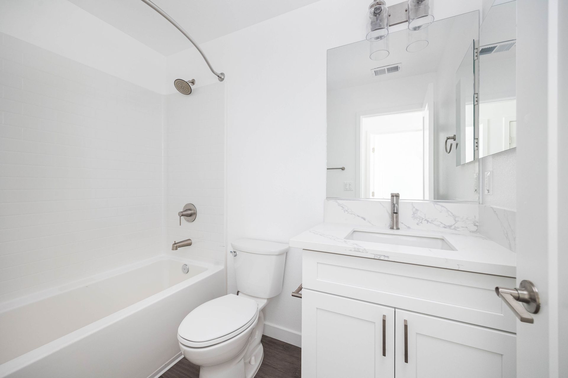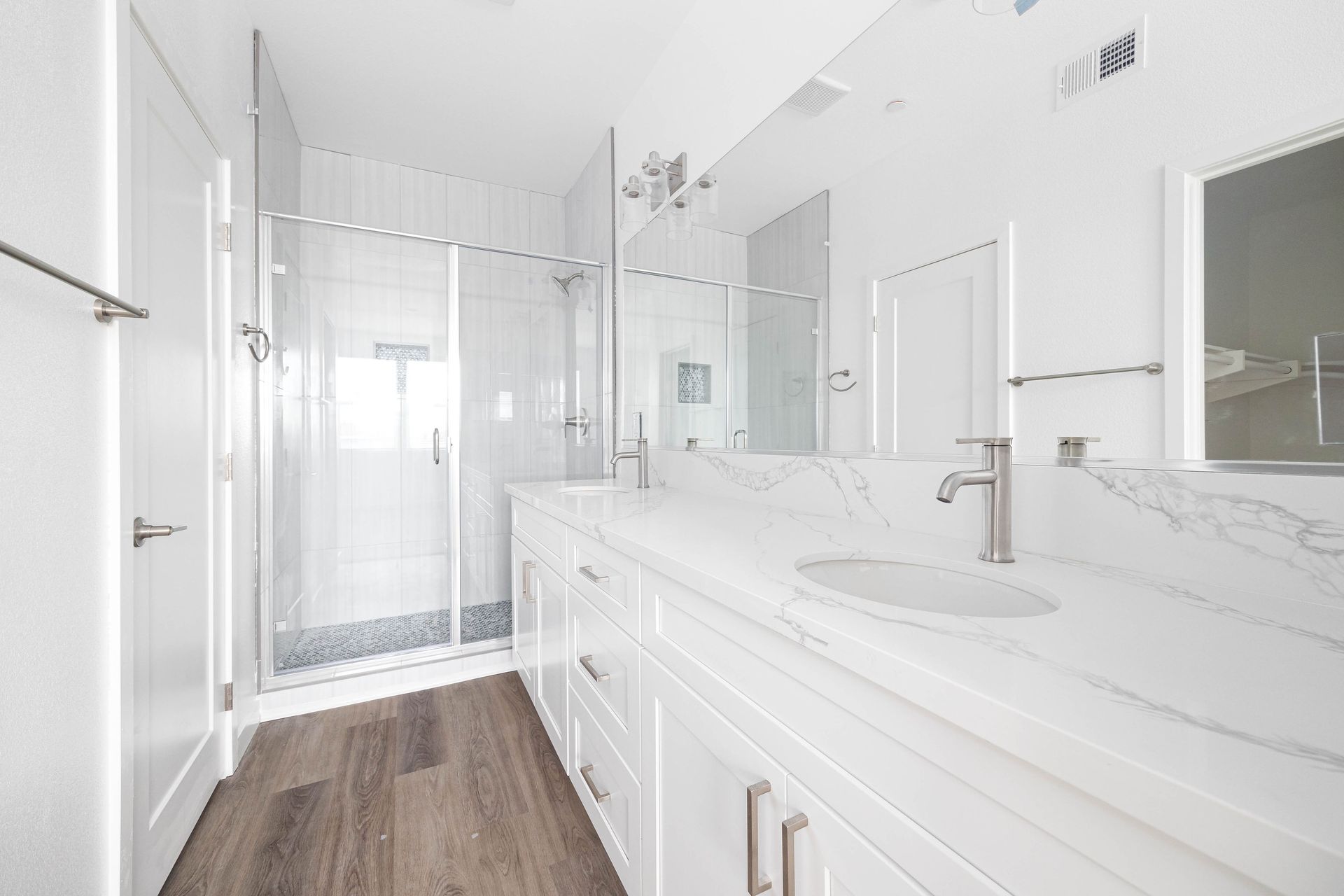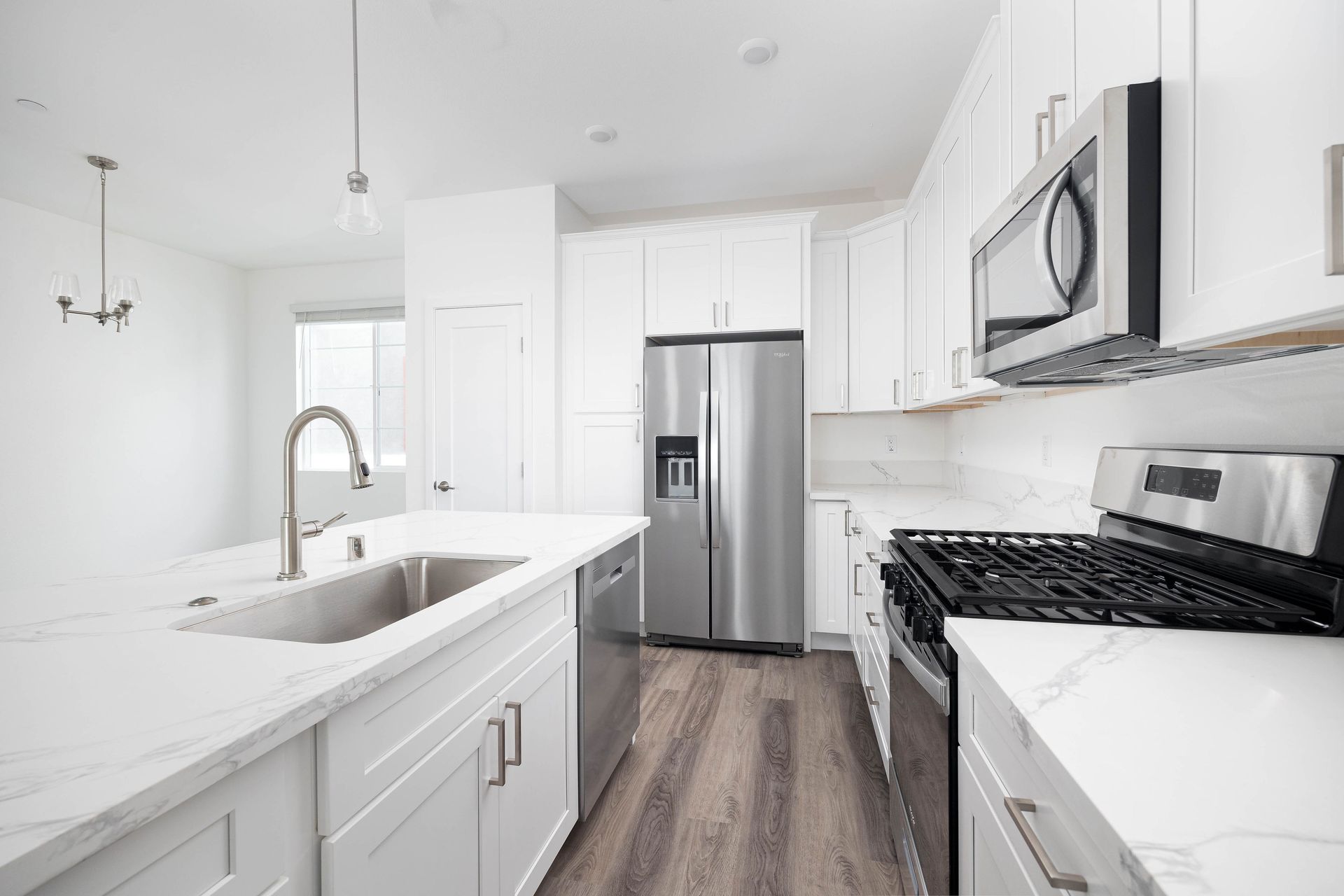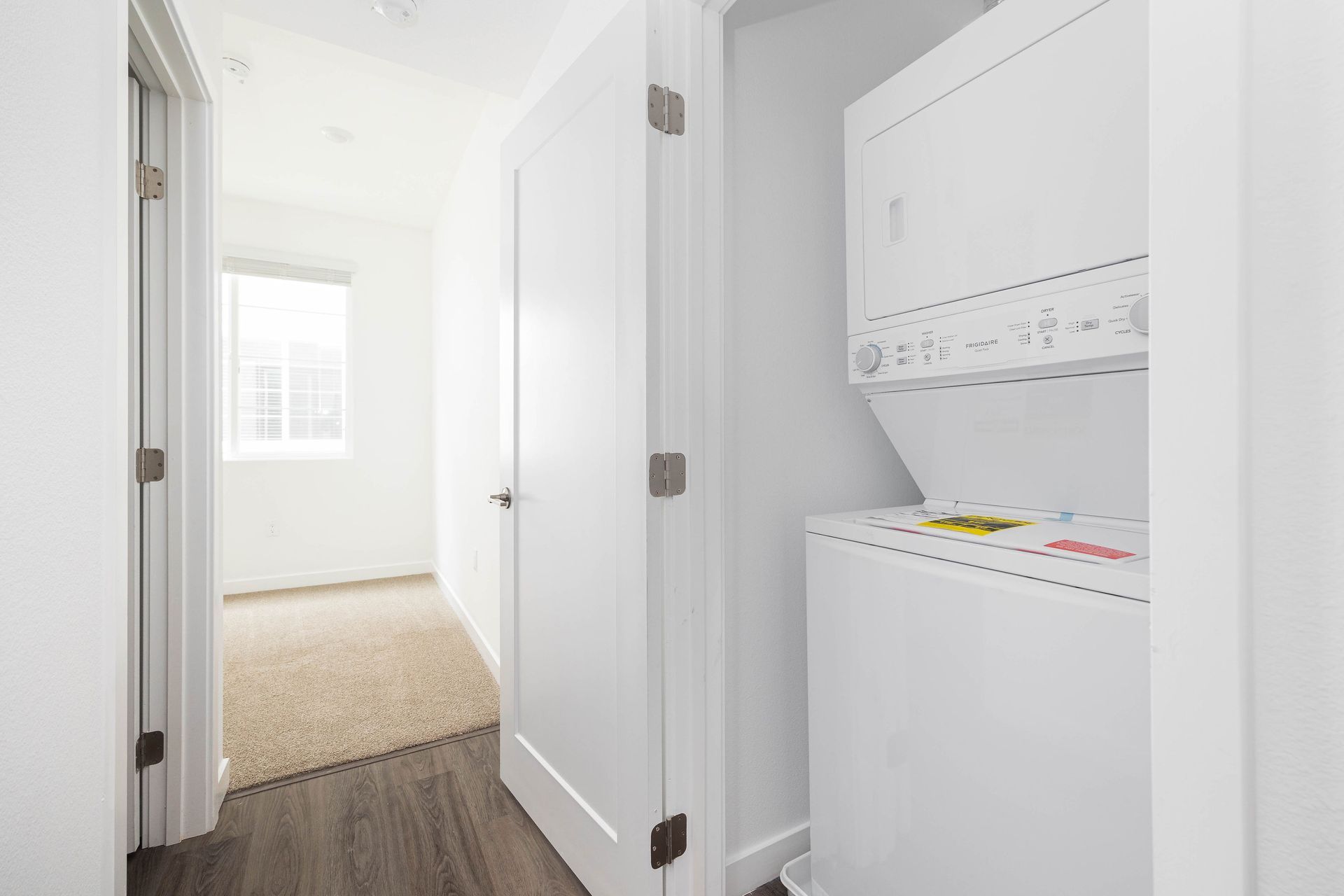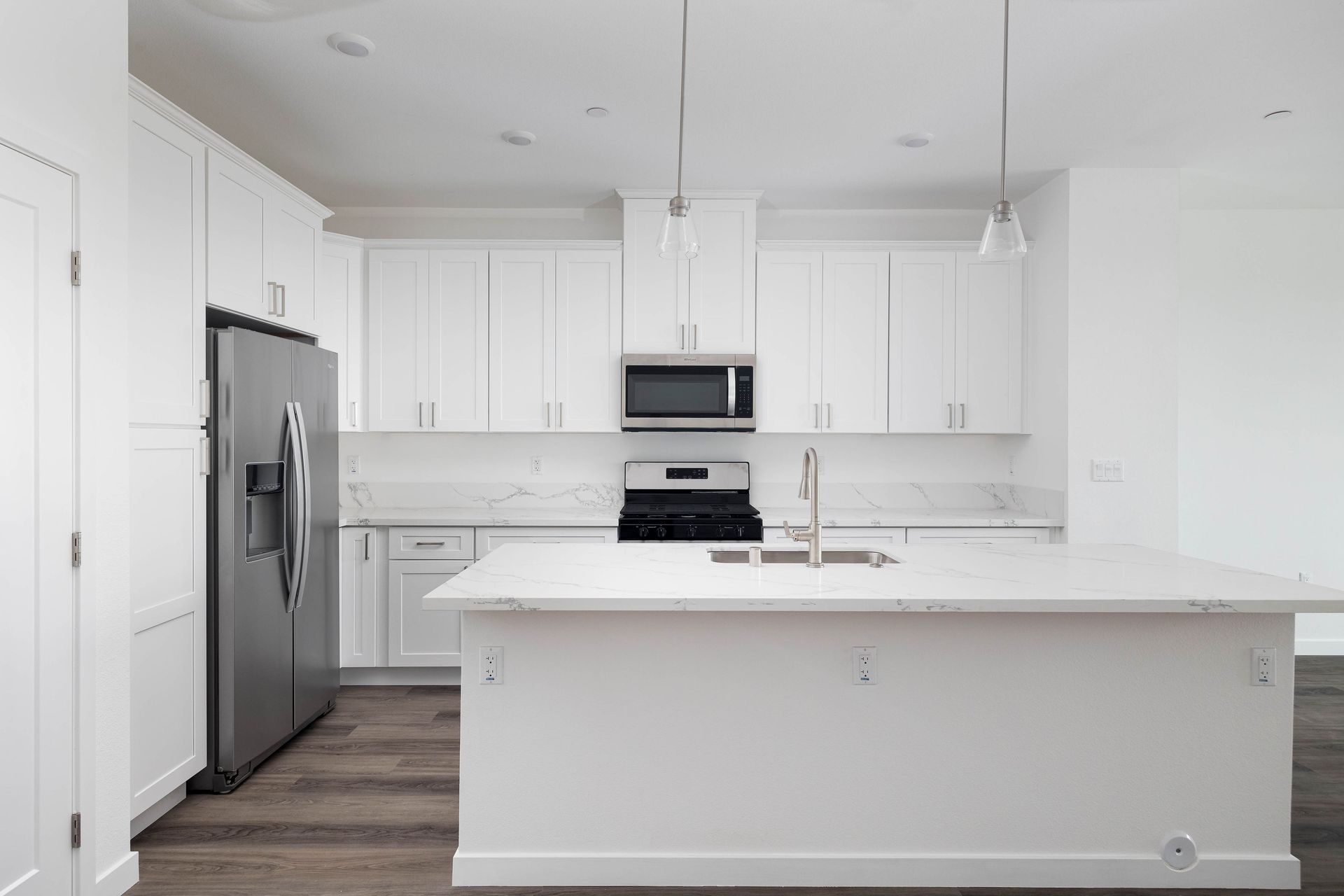This spacious unit at Raintree Court is 1656 Square Feet (including workspace). Unit 105 is a 2-bedroom plus den 2 1/2 bathroom townhome that boasts a convenient work space of 177 square feet on the ground level with direct access and dedicated climate control. This home has a large balcony with views from the kitchen/living/dining area. Other amenities include luxury vinyl plank flooring, plush carpeting in bedrooms and on stairs, a private 1-car garage, central air-conditioning, full-size stackable washer dryers, large gourmet kitchen with quartz countertops, island, stainless steel appliances and separate pantry. The addition of a den/ playroom is a bonus! The master bedroom features an en-suite bathroom with double sinks, shower with designer tile, separate water closet and walk in closet.