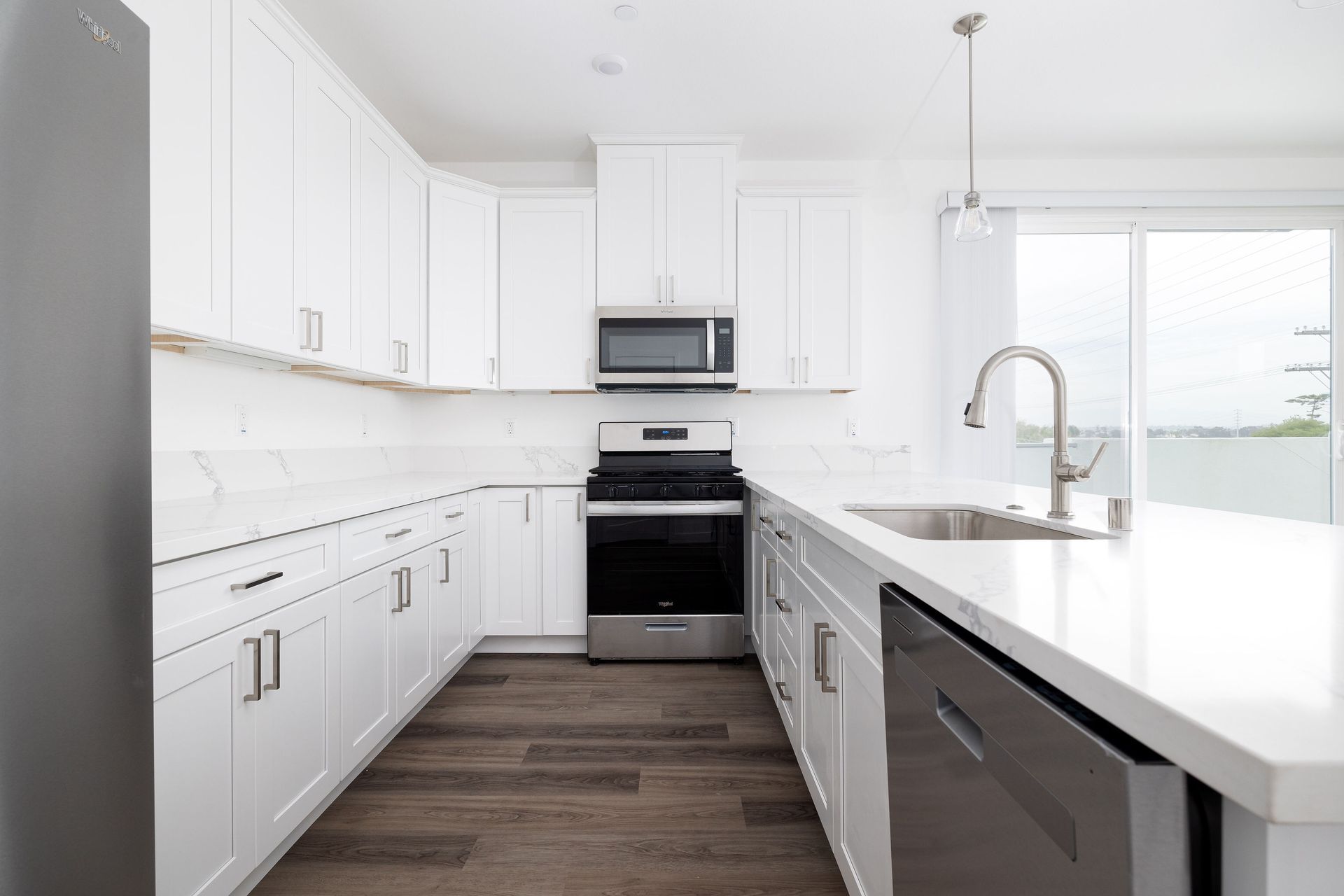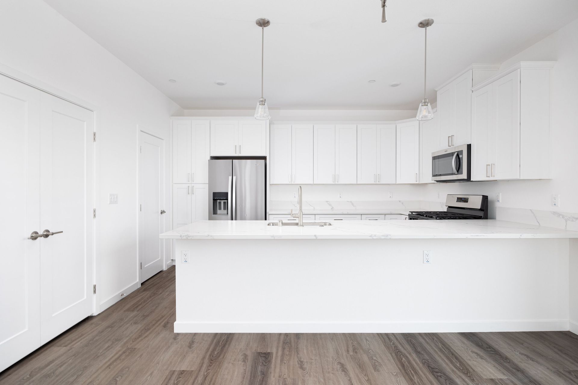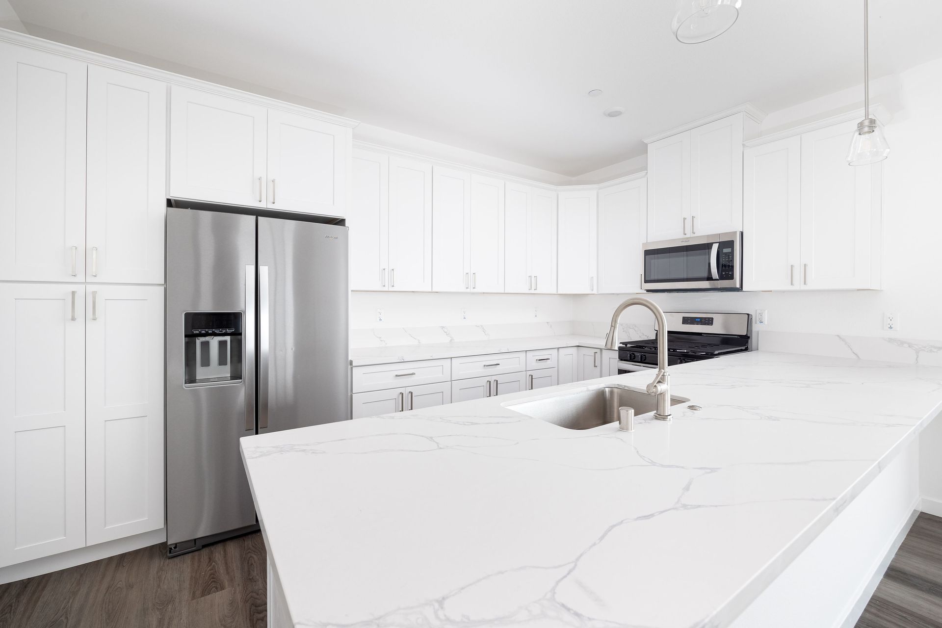This is the most spacious unit at Raintree Court at 1804 Square Feet (including workspace). Unit 106 is a corner 3-bedroom 2 1/2 bathroom townhome that boasts a sizable bright work space of 219 square feet on the ground level with direct access, large windows and dedicated climate control. The private 2-car garage has direct entry into the unit. This home has an expansive wrap around balcony with views from the kitchen/living/dining area. Other amenities include luxury vinyl plank flooring, plush carpeting in bedrooms and on stairs, central air-conditioning, full-size stackable washer dryers, large gourmet kitchen with quartz countertops, peninsula, stainless steel appliances and separate pantry. The spacious master bedroom features an en-suite bathroom with double sinks, separate water closet and walk in closet. Bedrooms 2 and 3 feature a convenient Jack and Jill bathroom.