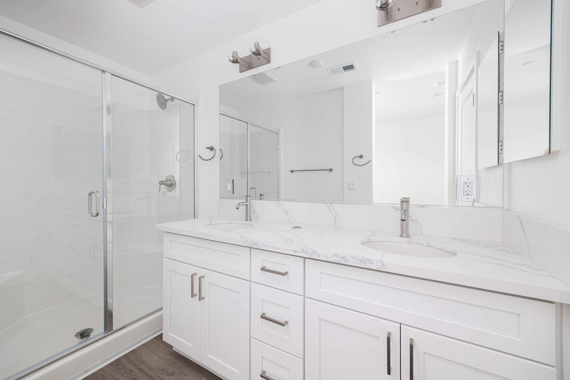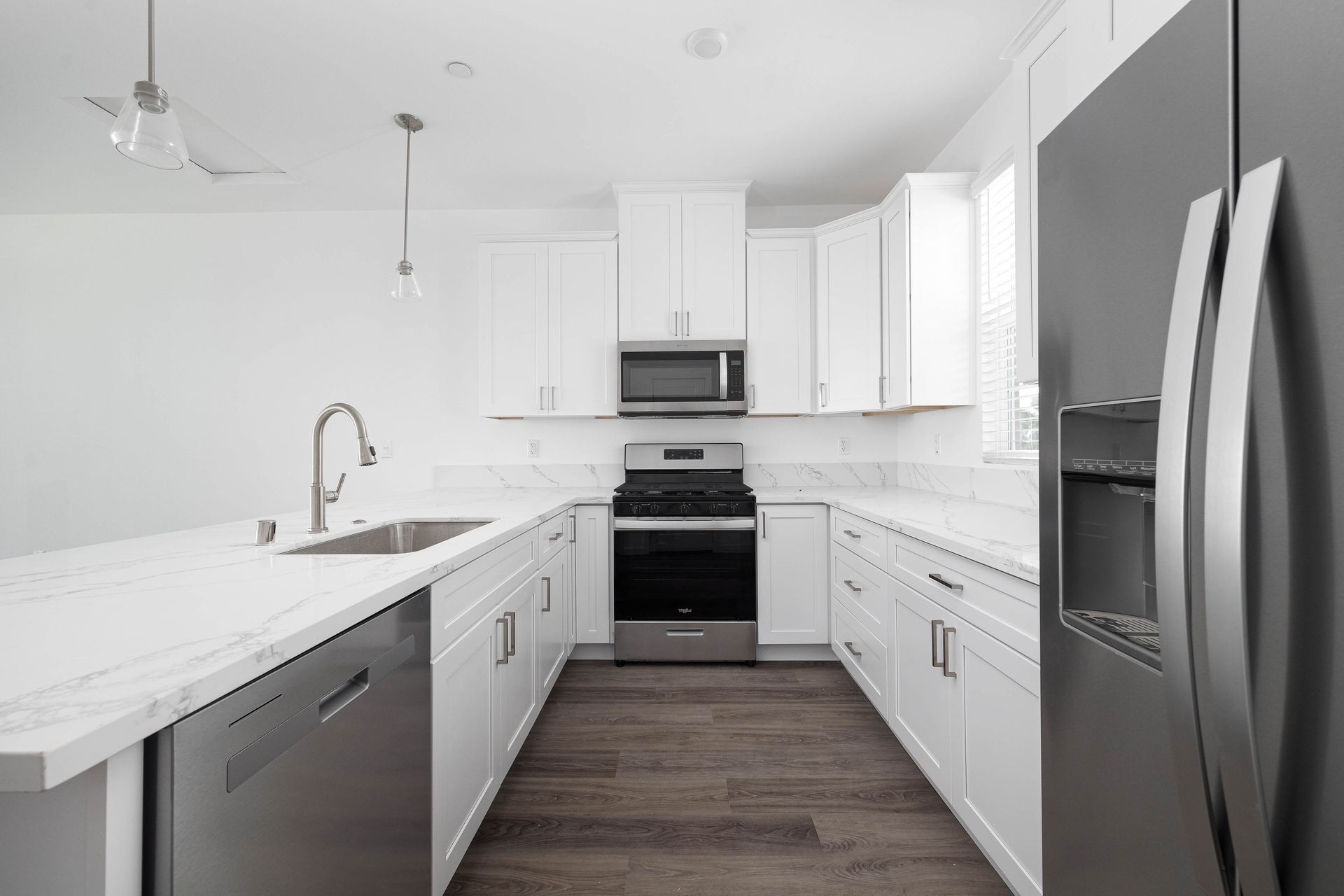 This spacious unit at Raintree Court is 1513 Square Feet (including workspace). Unit 102 is a 2-bedroom 2 1/2 bathroom townhome that boasts a convenient work space of 209 square feet on the ground level with direct access and dedicated climate control. The private 1-car garage has direct entry into the unit. This home has a large balcony with views from the kitchen/living/dining area. Other amenities include luxury vinyl plank flooring, plush carpeting in bedrooms and on stairs, central air-conditioning, full-size stackable washer dryers, large gourmet kitchen with quartz countertops, peninsula, stainless steel appliances and separate pantry. The master bedroom features an en-suite bathroom with double sinks, separate water closet and walk-in closet. The second bedroom is also en-suite.